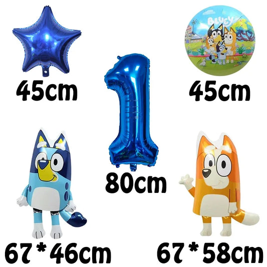 6Pcs Bluey Bingo Balloon Set Birthday Decoration Balloons Cute Foil Balloons Age Number Balloon Set Party Decoration Props Gift