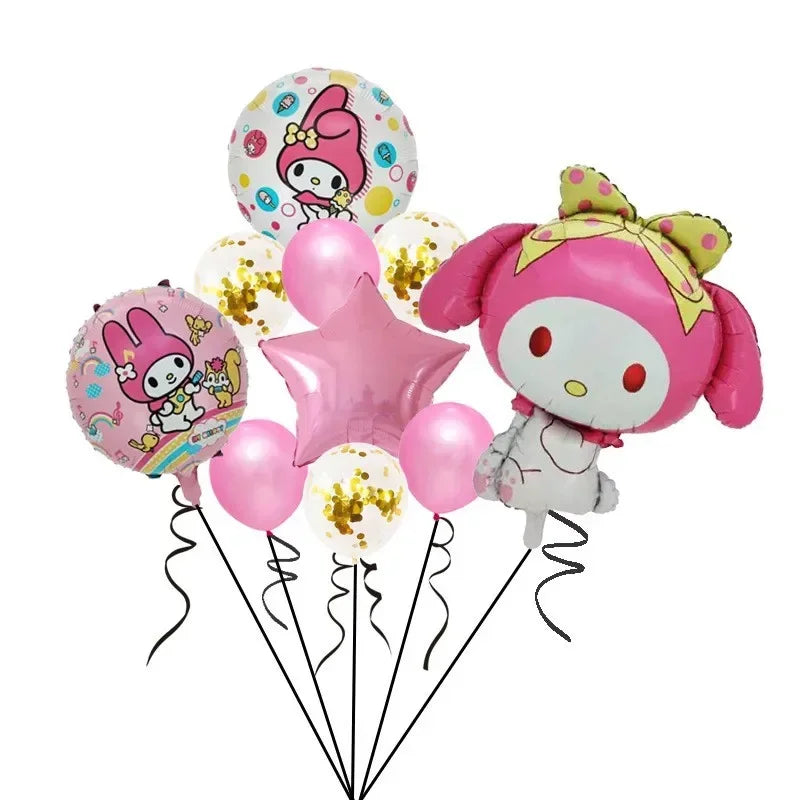 10pcs Whosale Sanrio Cinnamoroll Kuromi My Melody Pink Blue Foil Balloon Cartoon Anime Children's Birthday Party Decorative Toys